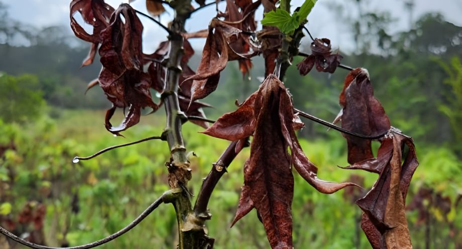 Esta doença fitossanitária foi detectada em agosto deste ano pela primeira vez no Brasil, e está atualmente presente no território do Amapá. Lá tem causado prejuízos, principalmente para a comunidade indígena e integrantes da agricultura familiar, nas plantações de mandioca, ao deixar os ramos das plantas secos e deformados.