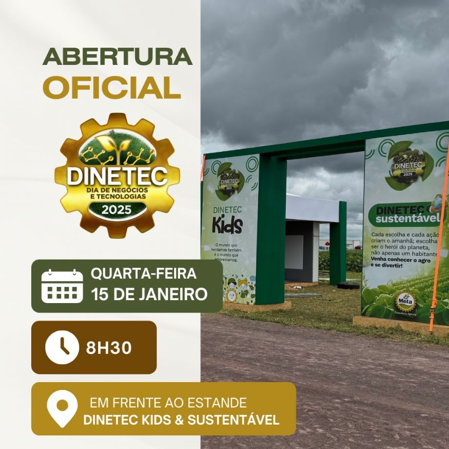 A 11ª edição do Dinetec (Dia de Negócios e Tecnologias) começa amanhã! Evento que se consolidou no calendário agropecuário do Brasil, o Dinetec vai de 15 a 17 de janeiro de 2025, em Canarana, Mato Grosso.