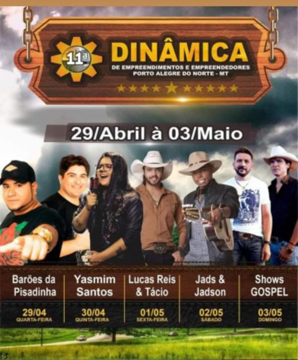 A comissão organizadora da 11 Edição da Dinâmica de Empreendimentos e Empreendedores de Porto Alegre do Norte definiu o calendários de show da maior feira do agronegócio da região Norte Araguaia.