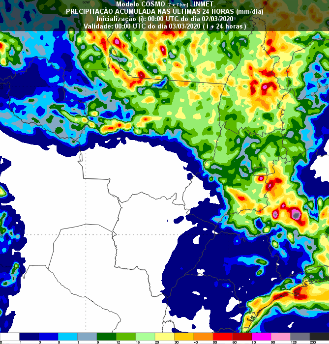 Nenhuma mudança em relação ao dia anterior. Ou seja, o Sul do país segue com tempo firme, e chuvas no restante do país. As áreas de soja do oeste da Bahia também não devem ter instabilidades. No Centro-Oeste, onde a soja já está pronta para a colheita, os trabalhos devem seguir parados por conta das chuvas.