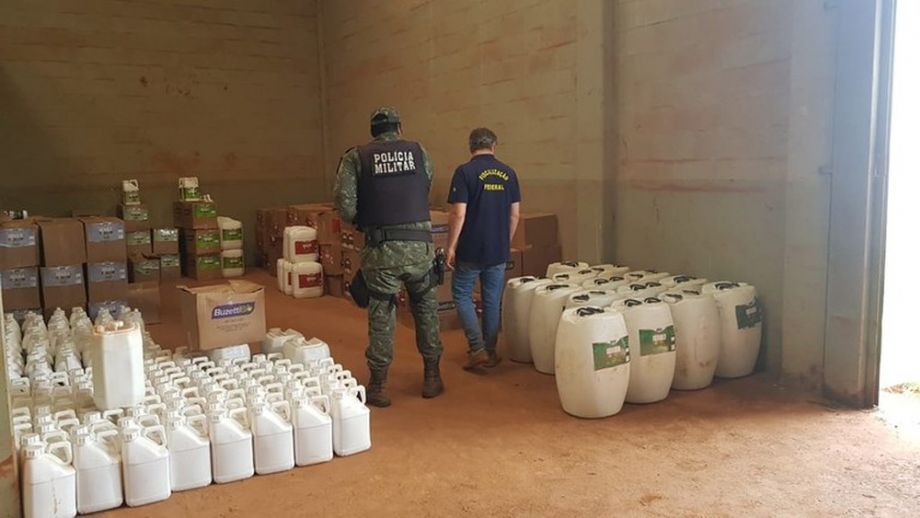O Mapa apreendeu mais de 14 mil litros de agrotóxicos sem registro e 4 mil litros de fertilizantes fraudados, que tinham rótulos de empresa do Paraná, mas eram produzidos clandestinamente no local, em Rondonópolis.