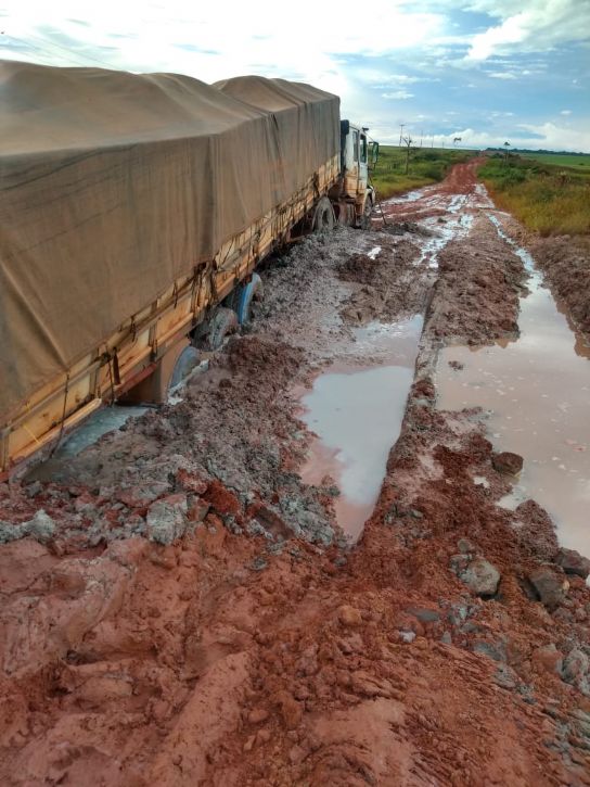 Nas fotos uma carreta atolada e o motorista sem ter o que fazer. O distrito é uma das regiões mais prósperas do Norte Araguaia com o desenvolvimento das lavouras de grãos.