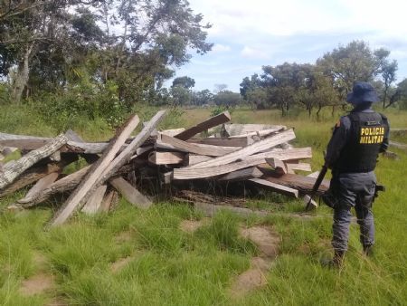 No local os agentes municipais e os Policiais Militares encontraram arvores derrubadas, a madeira já retirada seria usada para fazer cercas na propriedade.