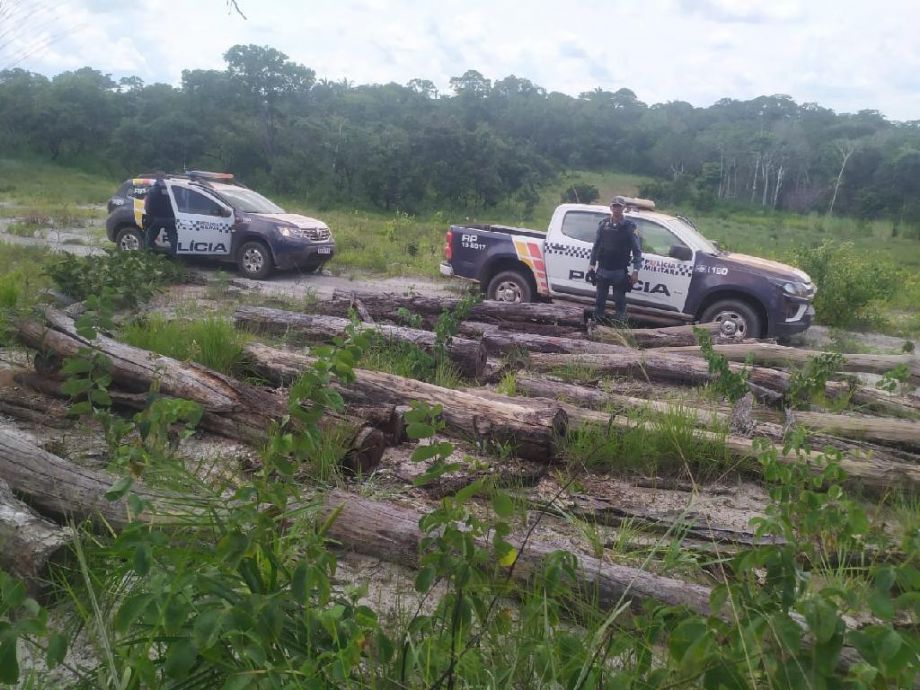 No local, os militares encontraram um acampamento montado, caminhões, tratores, uma motosserra, ferramentas e vários pedaços de madeira.