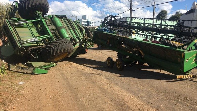 Apesar do susto, o único ferido foi o condutor da colheitadeira, que sofreu apenas escoriações leves e foi liberado após receber atendimento.