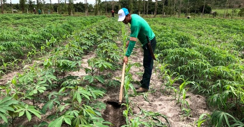 “Nas áreas com as boas práticas de produção, saímos de uma terra degradada, de pastagem, e no primeiro ano de cultivo saltamos de 12 toneladas por hectare para quase 30 toneladas de raízes de mandioca por hectare”, conta Arley Petrônio Martins da Silva, agricultor e técnico rural, morador do assentamento Lajedo II.