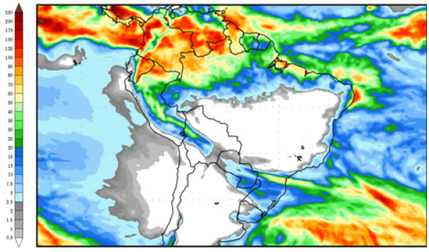 Figura 3. Previsão de chuvas entre os dias 15 e 23 de julho de 2021, em milímetros.
