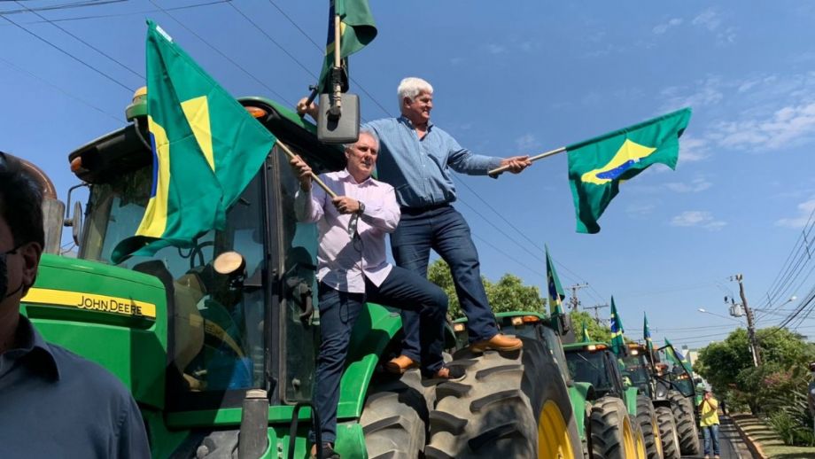 Um grupo formado por mais de 100 produtores rurais e empresários carregando bandeiras do Brasil, com faixas, placas e tratores fez, na manhã de segunda feira (23.08), uma manifestação em frente à delegacia da Polícia Federal, na avenida das Figueiras, no centro de Sinop, em apoio ao presidente da Associação Brasileira dos Produtores de Soja (Aprosoja Brasil), Antônio Galvan, que foi prestar depoimento na investigação autorizada pelo STF, semana passada, sobre os manifestos que estão sendo organizados para o próximo dia 7, em Brasília.