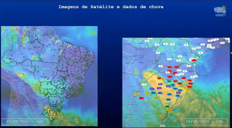 Também será possível acessar dados observados em tempo real nas Estações Meteorológicas do Inmet, imagens de satélite em tempo real, previsão de chuva, temperatura do ar e umidade relativa para sete dias e possibilidade de sobreposição de informações (diferentes camadas no mapa)