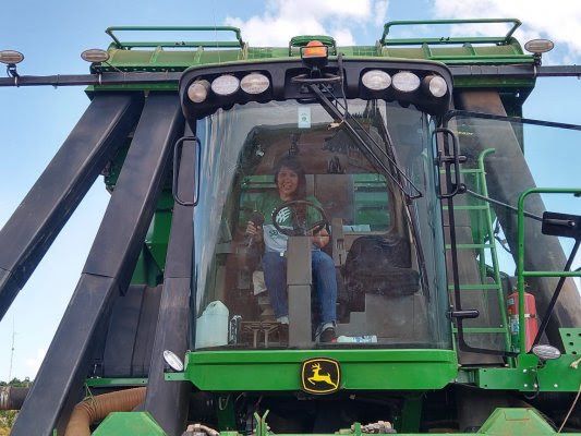 O primeiro contato com essa nova chance foi por meio de uma foto na internet em que uma mulher operava uma colhedora de algodão. "No começo desse ano, eu vi uma matéria sobre mulheres trabalhando no campo e eu fiquei deslumbrada com essa oportunidade".