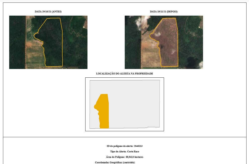 A Engenheira Florestal Thais Falqueto explica que “o sistema de monitoramento através de imagens de satélite implantados pela secretaria de meio ambiente do estado de Mato grosso tem sido crucial para o combate de desmates ilegais. O desmate não é proibido e a secretaria tem autorizado a emissão de licenças, desde que a propriedade esteja cumprindo as exigências do novo código florestal LEI Nº 12.651”. Ainda segundo Thais, atualmente os desmates são descobertos por intermédio deste sistema, que possui grande eficiência em casos como este.