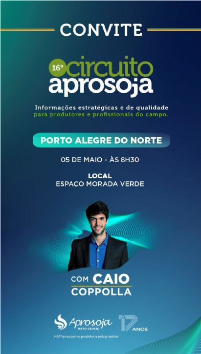 Nesta manhã de quinta-feira (05), a cidade de Porto Alegre do Norte, localizada na região Nordeste do Estado de Mato Grosso, foi palco da 16ª Edição do Circuito Aprosoja de Mato Grosso. A caravana desenvolvida pela Associação dos Produtores de Soja e Milho de Mato Grosso, trouxe até o município o Palestrante Renomado Caio Coppolla.
