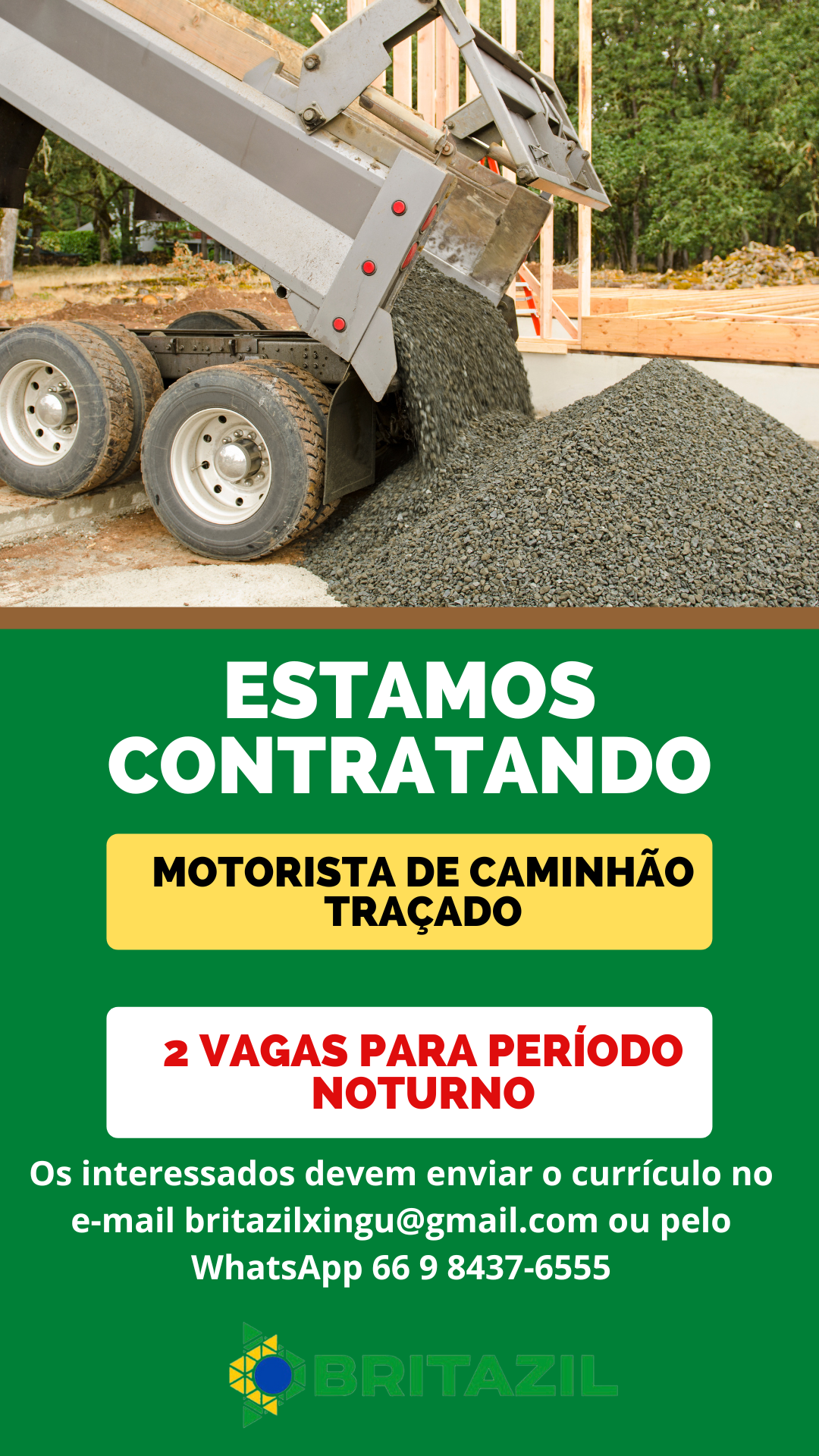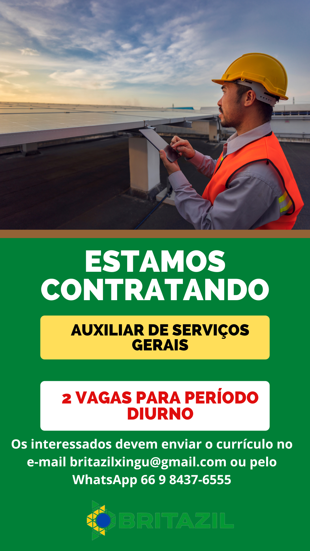 Para interessados nas oportunidades, deve-se enviar o currículo para o e-mail britazilxingu@gmail.com ou pelo WhatsApp 66 9 8437-6555.
