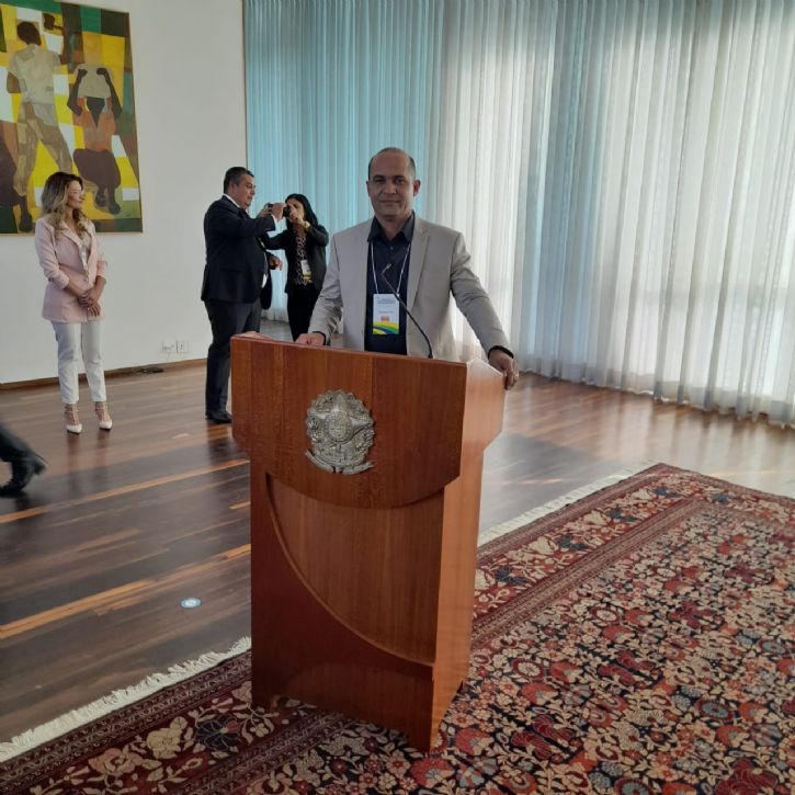 O empresário que a convite fez parte de uma seleta comitiva de lideranças políticas e empresariais da região que estiveram em uma reunião com o Presidente da República no Palácio da Alvorada, residência oficial do Presidente do Brasil. O edifício fica localizado as margens do Paranoá na Capital Federal do Brasil.