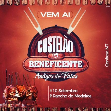 No dia 10 de setembro a Associação Amigos de Patas realizará um costelão beneficiente.