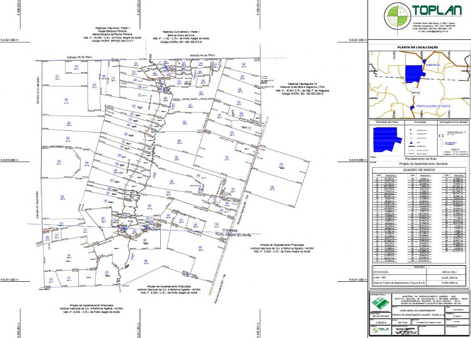 A Toplan Engenharia fez a entrega de 25 titulos de domínio no Projeto de Assentamento Xavante, que abrange os municípios de Confresa e Porto Alegre do Norte. A ação representa 25% da totalidade de famílias beneficiadas pelo projeto.