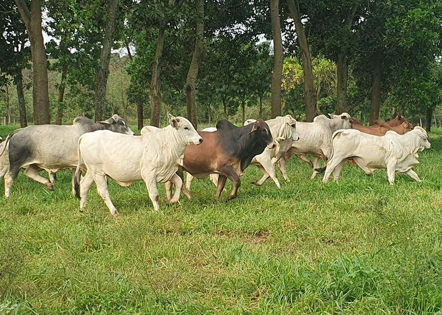 Desses animais, foram selecionados 32, oito de cada cruzamento, e divididos em dois grupos – um para a área de ILPF e outro para a de ILP. A fazenda, com 20,3 hectares de pasto de braquiária brizantha BRS Paiaguás, foi dividida em oito piquetes. A área de lavoura e pecuária foi implantada com milho para silagem consorciado com capim. Já a área de integração lavoura-pecuária-floresta foi composta por quatro espécies arbóreas: teca, eucalipto, mogno e nim. Os demais animais continuaram nas áreas comuns, seguindo o manejo rotineiro da ABCZ e os dados gerados a partir de seu desempenho foram utilizados para comparação dos resultados.