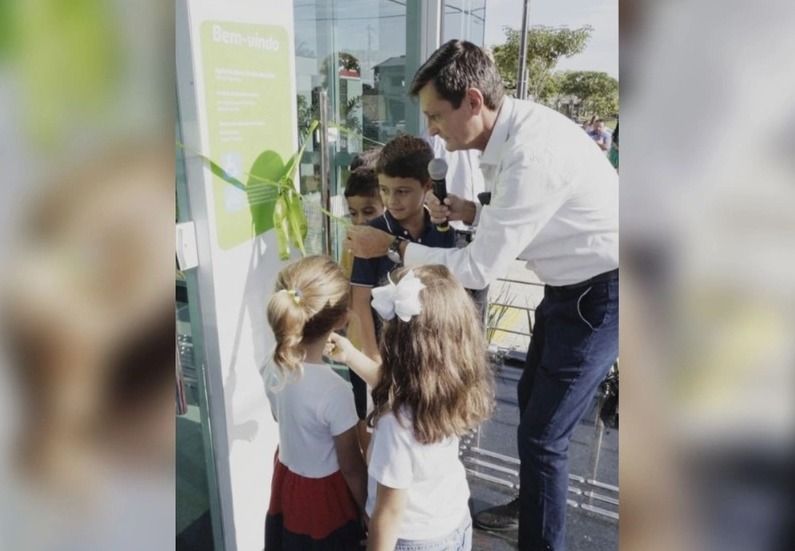 “As crianças são o futuro, e é por isso que eu gostaria de convidar as crianças que estão aqui presentes para retirarem a faixa inaugural e entrarem em nossa agência”, afirmou o presidente.